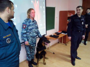 Также, детям была представлена работа кинологической службы — ребята познакомились с симпатичной овчаркой, которая служит в полиции.