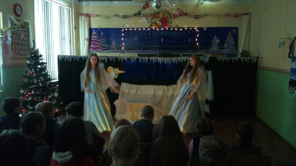 Рождественские спектакли, которые готовит для ребят нашей школы и наших гостей учитель начальных классов Валентина Михайловна Воробьёва вместе с творческим коллективом ребят нашей школы уже стали доброй традицией. Валентина Михайловна организовала театральную студию, которая показывает кукольные представления с элементами драмы — в спектаклях задействованы и куклы, и живые актёры.