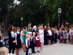 Но сначала учащиеся, родители и учителя школы собрались в стенах древнего Софийского Собора на Торжественный Молебен, который отслужил отец Святослав Цхай, духовник нашей школы.